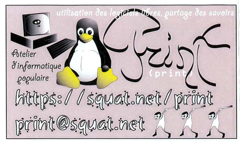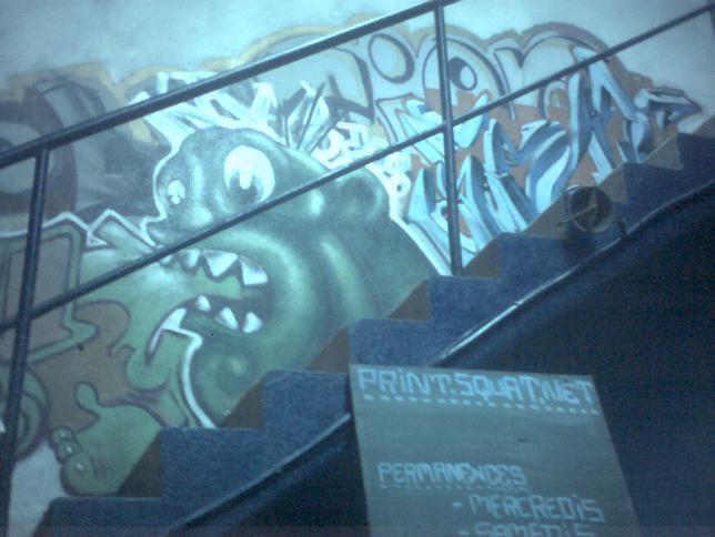 L'atelier PRINT a débuté au Pamplemousse (18, rue du Mid), lieu de vie collective occupé par sept personnes d'octobre 2000 au 11 juillet 2002, date de son expulsion (plus d'infos ici). Comme beaucoup d'autres, le bâtiment est désormais vide et complètement muré. Voici quelques clichés de l'atelier avant qu'il ne déménage...