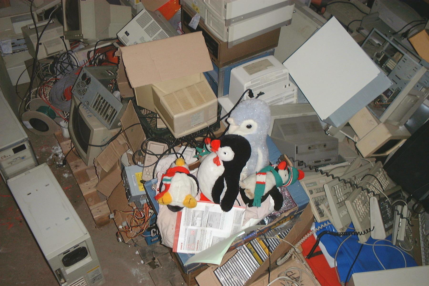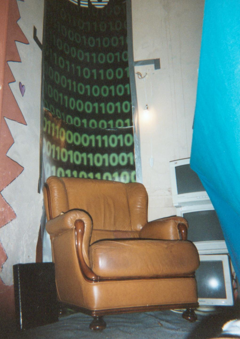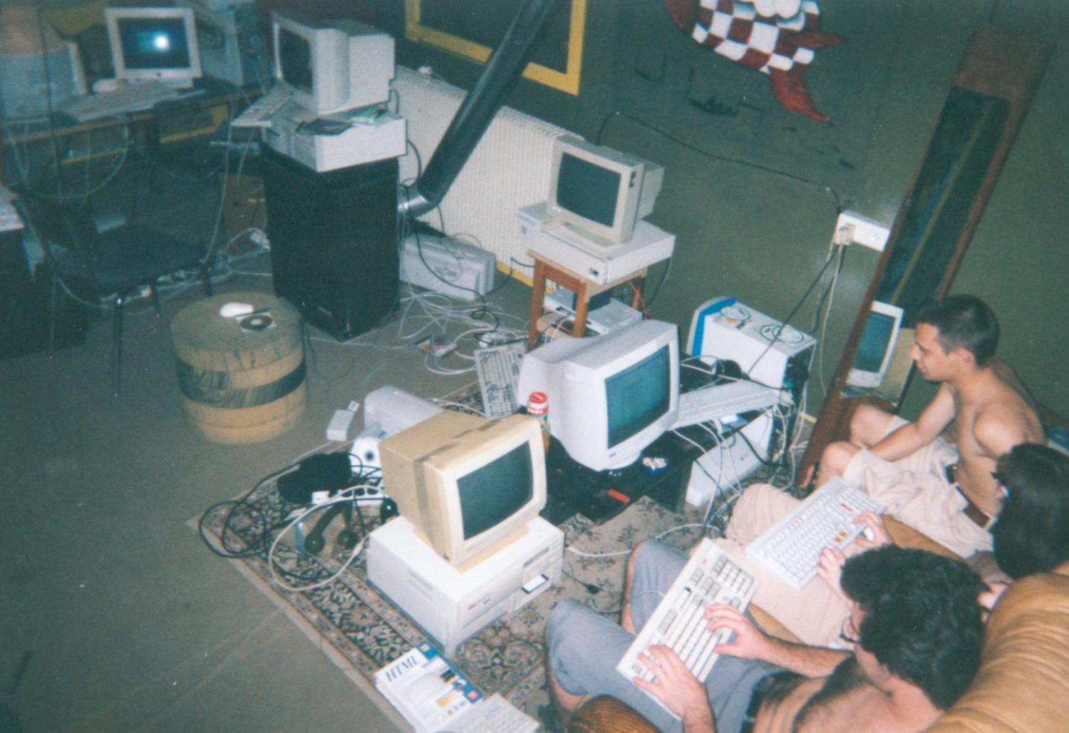 Installation d'un "mini open-access" et "laptop point" à l'occasion d'une réunion d'hiver 2003 de l'Action Mondiale des Peuples aux Tanneries.