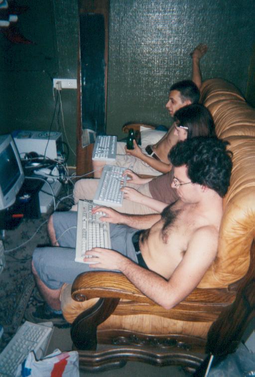Une session PRINT endiablée par un soir d'été (excusez la tenue, mais essayez de rester habillé-e-s en pleine chaleur avec 10 ordinateurs allumés !) :